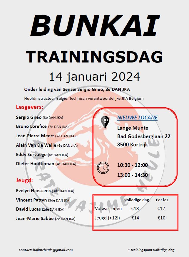 Opgelet: Dit jaar gaat de trainingsdag door in sporthal Lange Munte, Bad Godesberglaan 22, 8500 Kortrijk